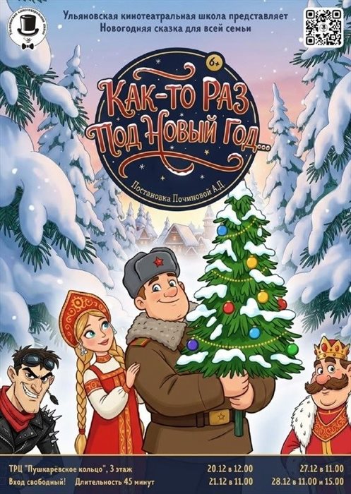 В творческом пространстве «Пушкин» (ТЦ «Пушкаревское кольцо») состоится показ новогодней комедии для всей семьи в стиле народных русских сказок «Как-то раз под Новый год». Вход свободный. (6+)
