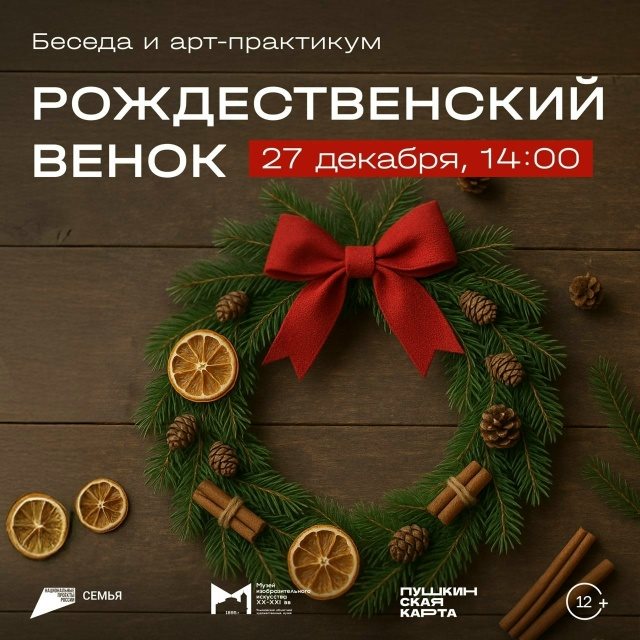 В Музее изобразительного искусства XX-XXI вв. состоится предрождественская встреча, где история искусства встретится с искусством рукоделия. В программе запланированы познавательная беседа с медиапрограммой, знакомство с произведениями на тему Рождества из фондов музея, особый взгляд на евангельские сюжеты художницы Надежды Свешниковой. На арт-практикуме каждый посетитель сплетет собственный рождественский венок — символ вечной жизни, радости и домашнего уюта, чтобы украсить им свой дом. (12+)
