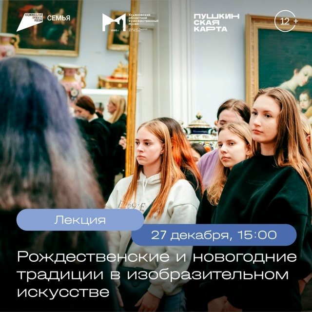 В Ульяновском областном художественном музее можно послушать лекцию «Рождественские и новогодние традиции в изобразительном искусстве», которая перенесёт в зимнюю сказку прошлого через картины русских художников. Какие новогодние и рождественские сюжеты любили изображать живописцы, как по картинам изучить украшение интерьеров, елок, проследить, какие традиции дошли до наших дней, как менялось настроение праздника от эпохи к эпохе – все это доступно в коллекции нашего музея. (12+)