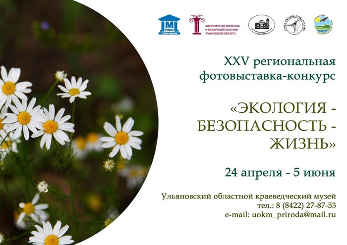 В Ульяновском областном краеведческом музее 24 апреля открылась ежегодная региональная фотовыставка-конкурс «Экология – Безопасность – Жизнь». Это тоже традиция, которой насчитывается уже 25 лет. В экспозиционном зале музея представлены 70 работ фотографов региона в номинациях «Эковзгляд» (Проблемы экологии), «Открывая Ульяновскую область заново» (Ландшафтная съёмка), «Стоп-кадр» (Флора и фауна), «Юный фотонатуралист» (работы детей в возрасте до 16 лет). В Год защитника Отечества в Российской Федерации учреждается специальная номинация «Экологический патриотизм» – за проявление заботы о природе своего региона или страны. Посетить выставку нужно не только, чтобы увидеть красивые фотографии природы, но и чтобы определить лауреата зрительских симпатий. Голос за понравившуюся работу можно оставить в книге отзывов. (6+).