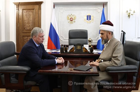 Встреча губернатора Ульяновской области Алексея Русских и муфтия Ильдара хаджи Сафиуллина состоялась в доме правительства в преддверии праздника Курбан-байрам.