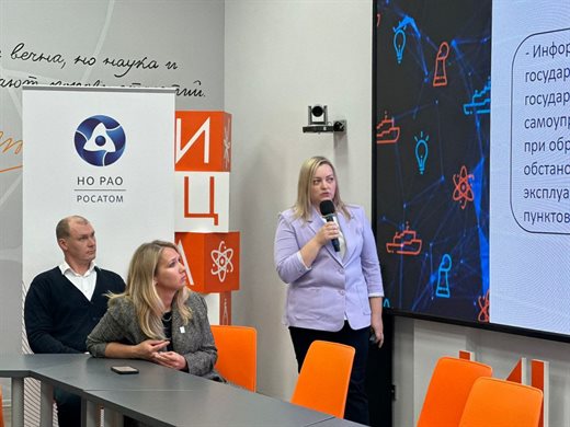 Ольга Кочерга, эксперт информационного центра филиала «Димитровградский» ФГУП «НО РАО», рассказала о работе по информированию общественности о безопасном обращении с радиоактивными отходами.