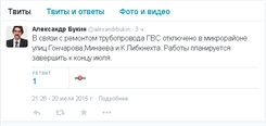 До конца июля жители центральных улиц Ульяновска останутся без горячей воды. Причина: ремонт трубопровода горячего водоснабжения в районе улиц Гончарова, Минаева, Карла Либнехта. Как сообщил в своем микроблоге «Твиттер» министр строительства, ЖКК и транспорта Александр Букин, горячая вода появится в кранах ульяновцев уже к концу июля.