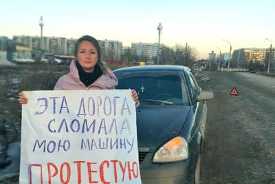 Есть в нашей жизни события, которые через колено ломают твою семью, твой привычный образ жизни или… твою машину. Жительница Ульяновска Виктория Маркелова, проколовшая колесо в створе улицы Алексея Наганова и проспекта Зырина, не вытерпела и решила бороться. Как у нас в народе говорят, психанула. На куске обоев, который нашелся в багажнике, написала: «Эта дорога сломала мою машину». А красной помадой дописала крупно: «ПРОТЕСТУЮ!». И встала рядом с этим самодельным плакатом.