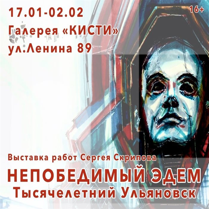 Сегодня в 18:00 в галерее «Кисти» состоится открытие выставки художника Сергея Скрипова «Непобедимый Эдем. Тысячелетний Ульяновск». В экспозиции будут представлены 22 работы, интерактивные площадки. В рамках выставки пройдет мастер-класс, встреча с художником и тематическая лекция. Выставка повествует о том, как человечество тщетно ищет мифический райский сад, забывая о том Эдеме, который всегда с нами рядом. 16+.