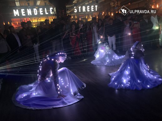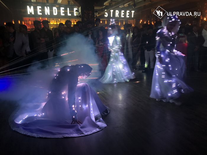 На вечеринку прибыли артисты Джива-шоу из Самары. Они встречали гостей, приветствовали их и фотографировались рядом с тематическим банером. Особый восторг публики вызвало свето-лазерное шоу.