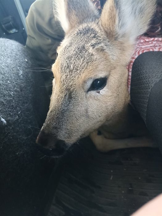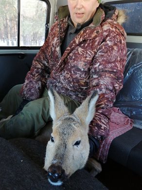 «Можно сказать, что зверь обрадовался, когда нас увидел, – рассказывает старший государственный инспектор Владимир Устинов. – Косуля позволила нам к нему подойти, погладить, успокоить себя. Без проблем прошла с нами в автомашину, как будто понимала, что мы ему поможем».