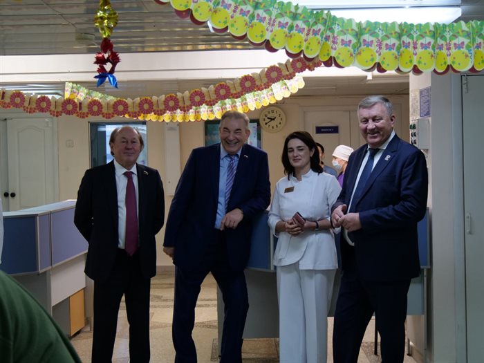 Депутаты Государственной думы Владислав Третьяк и Владимир Кононов совместно с секретарем регионального отделения «Единой России» Владимиром Камеко и руководителем исполкома партии Константином Долговым передали подарки, собранные в ходе благотворительной акции «Коробка храбрости», в областную детскую клиническую больницу.