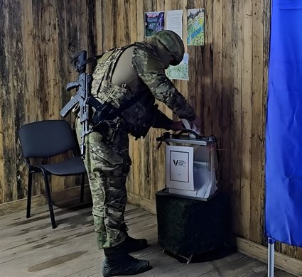 Никогда прежде в истории России президентские выборы не проходили в условиях боевых действий: сотрудники избирательных комиссий в бронежилетах организуют участки прямо в пунктах временной дислокации подразделений, урны уходят на передовую. Под грохот выстрелов, в блиндажах за будущее России голосуют те, кто грудью встал на ее защиту.