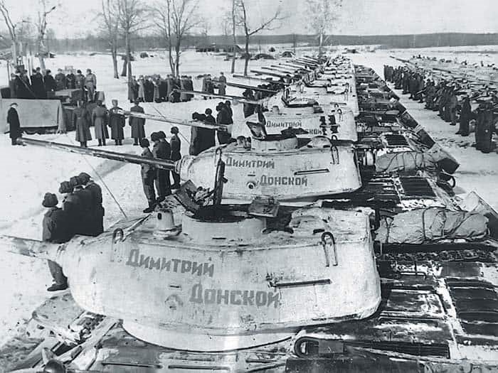 30 декабря 1942 года владыка Сергий начал собирать средства на танковую колонну имени Димитрия Донского. Результат превзошел ожидания - верующие передали более 300 миллионов рублей. На эти деньги было изготовлено 40 танков Т-34, а также создана авиаэскад-рилья имени Александра Невского.