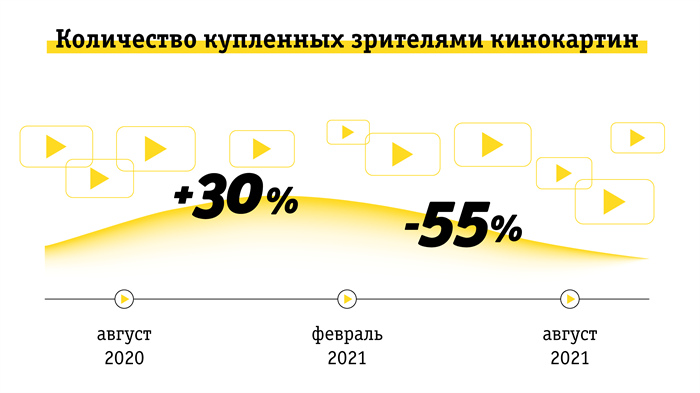 Это подтверждают и эксперты «Билайн.Аналитики», которые выяснили, что количество потребляемого контента в осенний и зимний периоды значительно превышает летние показатели. Так, с августа 2020 года по февраль 2021 года количество купленных зрителями кинокартин возросло почти на треть, а в следующие несколько месяцев – вплоть до середины августа – снова снизилось на 55%.
