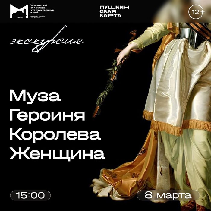 Музей изобразительного искусства XX-XXI вв. 9 марта в 14:00 познакомит с выставкой легендарного фотографа Евгения Халдея (12+). Ульяновский областной художественный музей приглашает 9 марта в 15:00 на экскурсию «Её портрет, её судьба» (12+). Экскурсия знакомит с женскими портретами, исполненными мастерами русской живописи Карлом Брюлловым, Фёдором Рокотовым, Александром Маковским, Пётром Заболотским и другими, представленными в экспозиции музея.