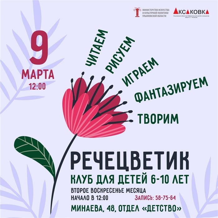 Юных любителей чтения Аксаковка приглашает в клуб «Речецветик». Встреча будет посвящена 210-летию П. П. Ершова, автора известной сказки «Конек-горбунок». 6+.