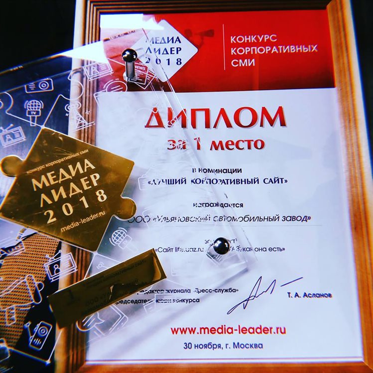 Сайт www.life.uaz.ru занял 1-е место в номинации «Лучший корпоративный сайт» по итогам Международного конкурса корпоративных СМИ «Медиалидер-2018». Победителей наградили в Москве в минувшую пятницу.