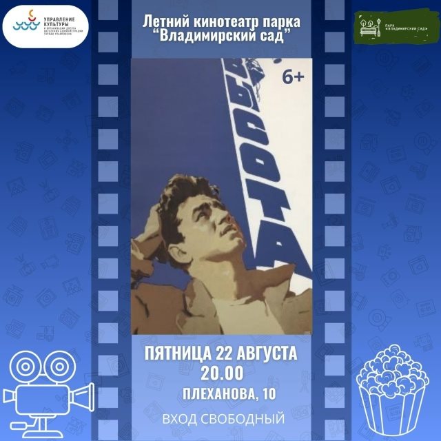 Во Владимирском парке запланирован очередной открытый кинопоказ. Будем смотреть легендарный советский фильм «Высота» (6+).