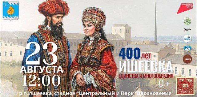 Тоже в субботу юбилей отметит р.п. Ишеевка. Фестиваль «400 лет единства и многообразия» начнется в 12.00 на стадионе «Центральный». В программе живые выступления артистов, мастер-классы по народным ремёслам, блюда местной кухни, весёлые игры и развлечения для всей семьи (0+).