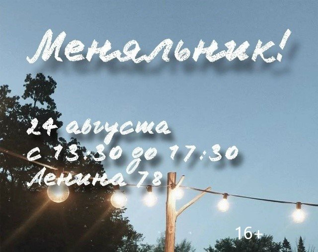 Поменяться ненужными, но еще целыми и полезными вещами, в это воскресенье можно будет на двух локациях. В 13:30 в креативном пространстве «Квартал» начнется «Августовский меняльник» - мероприятие для фанатов книги Мариам Петросян «Дом, в котором...». На нём люди обмениваются вещами, общаются и просто хорошо проводят время. Чуть раньше, в 13:00 в Молодежном центре современного искусства начнется своп на Бася-маркете. Организаторы предлагают обменяться DIY-вещами**, которые владельцы сделали сами или купили у других мастеров. Это может быть кастомная одежда, самодельные гирлянды, статуэтки, картины, шкатулки, открытки и наклейки и многое другое. Однако здесь, чтобы обменять что-то ненужное, сначала придется приобрести нужное - билетик. (16+).