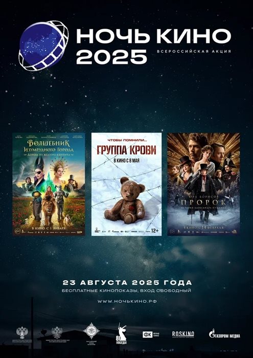 А 23 августа, накануне Дня российского кино, в Ульяновской области пройдет юбилейная, десятая «Ночь кино». В этом году к акции присоединятся 53 площадки – 49 кинозалов в селе Ундоры, р.п. Радищево, п.г.т. Новоспасское и других районах области. В Ульяновске показы пройдут в кинозалах «Люмьер», «Современник», «ДК им. 1 Мая», ДК «Руслан». В Димитровграде - в зрительном зале «Восход», в Новоульяновске - на площадке КДЦ «Браво» и в кинозале «Мир 3D». Также состоятся показы на открытых пространствах: во Владимирском саду Ульяновска; на площадке районного дома культуры в Старой Кулатке; в парке «Семейный» в Большом Нагаткино; в парке культуры и отдыха Новой Майны. В этом году в рамках акции покажут военную драму «Группа крови» (12+), волшебное фэнтези «Волшебник Изумрудного города. Дорога из желтого кирпича» (6+), музыкальный байопик «Пророк. История Александра Пушкина» (12+).