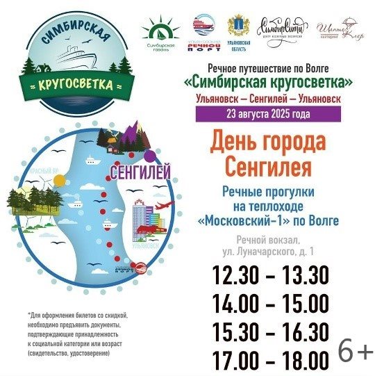 И опять в фокусе внимания Сенгилей! 23 августа город отметит день рождения, здесь пройдет фестиваль народного творчества «Спасы земли Сенгилеевской», а из Ульяновска туда можно добраться очередным рейсом «Симбирской кругосветки». Это проект, посвященный развитию внутреннего водного туризма, возрожденный ульяновским речным портом и туроператором «СимбирСити». Первые два рейса в июле и начале августа прошли при абсолютном аншлаге. Сенгилеевцы встречали гостей на причале песнями, частушками. В парке «Тишь да гладь» была организована концертная программа, у речного вокзала – ярмарка мастеров, экскурсии по историческому центру города и музеям. В субботу у гостей Сенгилея будет выбор: остаться гулять на Дне города или отправиться в национальный парк «Сенгилеевские горы» с захватывающими видами со смотровой площадки «Гранное ухо» и посещением святого родника «Крещенский». Пока гости будут наслаждаться праздником и прекрасными пейзажами, теплоход совершит четыре прогулочных рейса с сенгилеевцами на борту. А уже в воскресенье теплоход из Ульяновска впервые отправится в однодневный речной тур в «Замок Гарибальди» под Тольятти. (6+). Так что не верьте календарю, лето не кончается.