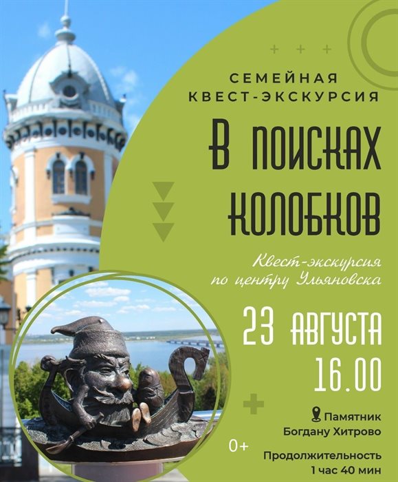 Посмотреть Ульяновск и пересчитать всех колобков приглашает проект «По ходу. С детьми». Экскурсия-квест состоится в субботу (0+). Пешеходно-автобусную экскурсию «Большой Ульяновск» 23 августа в 10:00 организует туроператор АНО «СимбирСити» (12+). Экскурсанты познакомятся с историей города от его основания до нашего времени, побывают на обоих берегах Волги, посетят знаменитые памятники архитектуры, услышат истории из жизни известных горожан.