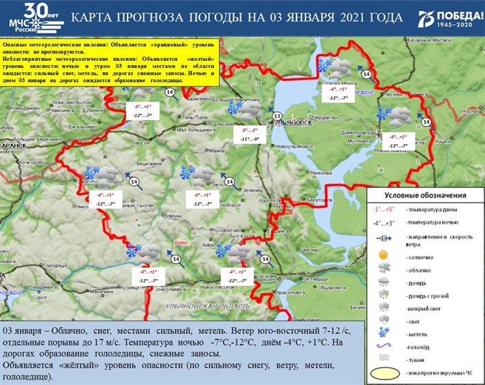 Новый, 2021 год начинается для ульяновцев с капризов погоды. МЧС предупреждает: на улице небезопасно, на дорогах гололед.
