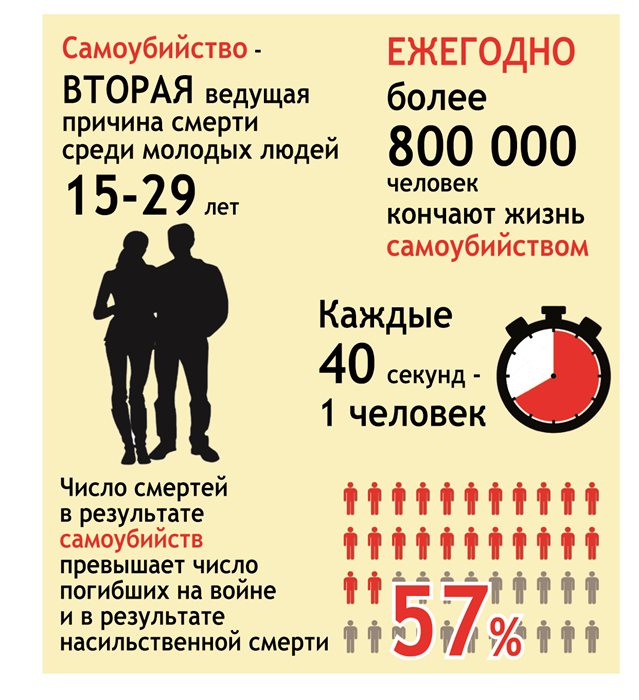 - Существует миф, что самоубийства связаны с социально-экономическими причинами, с неблагополучием, однако это не так, - подчеркнул эксперт. - В благополучных США есть устойчивый рост суицидов, в странах Азии, Африки их количество на уровне статистической погрешности, хотя они значительно беднее.