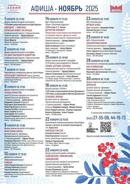 Программу Ульяновской филармонии в ноябре смотрите на афише.