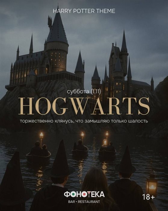 «После стольких лет? Всегда» — фраза, от которой внутри снова просыпается тот самый ребёнок, мечтавший, чтобы сова принесла письмо из Хогвартса. 1 ноября в «Фонотеке» пройдет День Хогвардса: тематическая программа, распределяющая шляпа, конкурс костюмов и сливочное пиво (вопреки названию, это безалкогольный напиток). Вход свободный, 18+.
