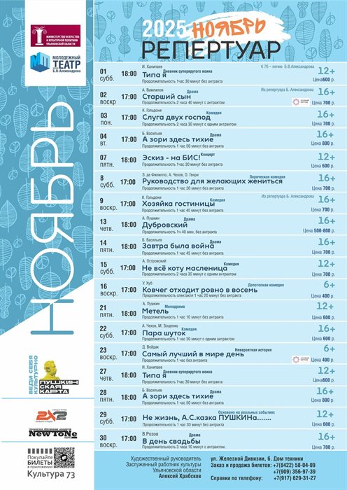 Также представляем ноябрьские афиши ульяновских театров.