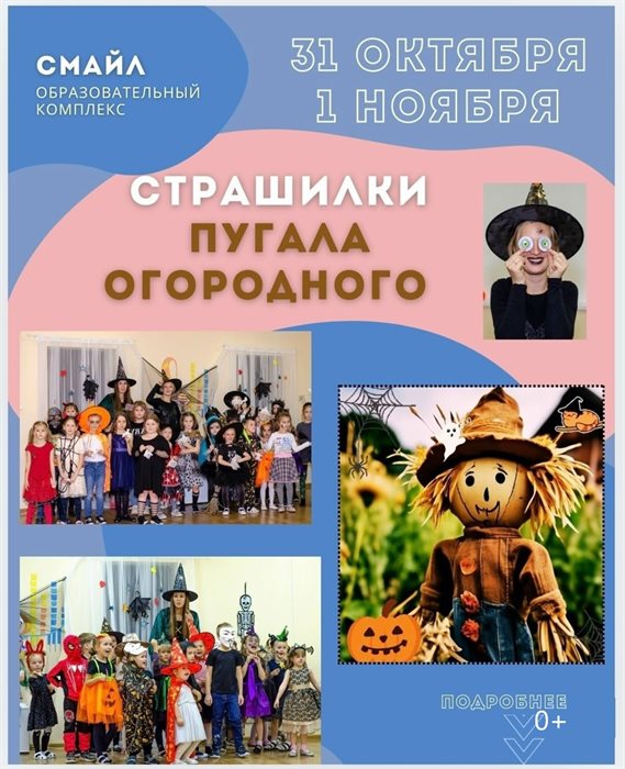 Детская вечеринка «Страшилки Пугала огородного» будет проходить в образовательном центре «Смайл» (Заволжье). Пугало окажется страшно смешным, будет загадывать загадки, устроит дискобатл и приготовит другие сюрпризы. (0+)