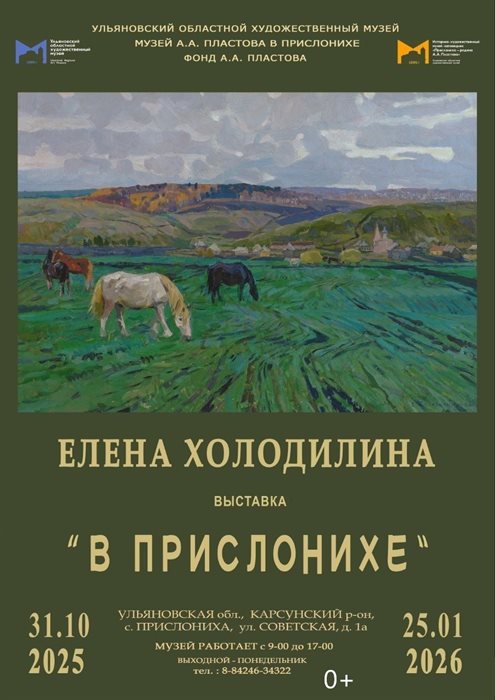 Сегодня в Историко-художественном музее-заповеднике «Прислониха - родина А.А. Пластова» - месте, где родился и творил великий русский художник Аркадий Пластов, открывается новая выставка. Она посвящена творчеству мастера лирического русского пейзажа Елены Холодилиной - яркой представительницы московской школы живописи, чье искусство неразрывно связано с наследием Пластова. На выставке «В Прислонихе» посетители смогут увидеть разнообразные работы художницы: завораживающие пейзажи, наполненные атмосферой русской природы, натурные этюды, передающие мимолетные впечатления, а также портреты жителей Прислонихи, в которых отражены их душевная красота и самобытность. (0+)