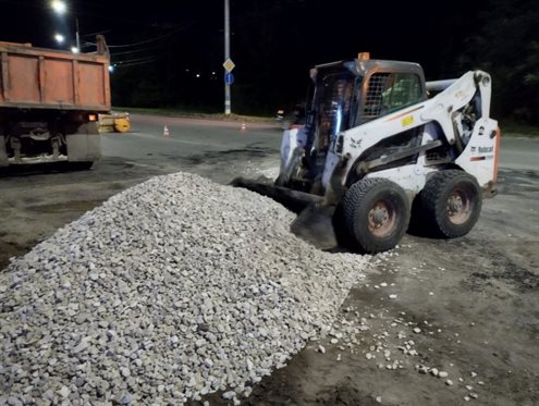 С 23 часов пятницы начался демонтаж неэксплуатируемых элементов железной дороги. После этого было отсыпано основание из щебня, а с 7 утра дорожники начали укладывать асфальт.