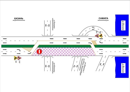 С 10 апреля на участке автомобильной дороги Р-241 Казань – Буинск – Ульяновск, подъезд к городу Самаре будет введено реверсивное движение. Правая проезжая часть (в направлении города Самары) будет полностью перекрыта, движение будет осуществляться по одной полосе в каждом направлении по левой стороне проезжей части.