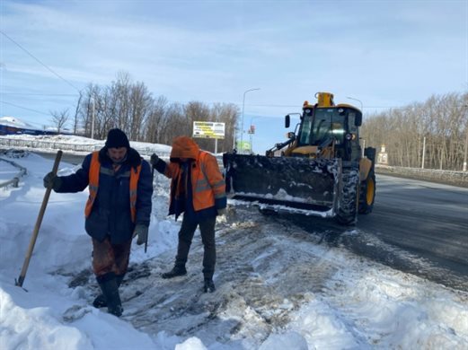 Продолжается вывоз снега с транзитных участков автодорог в населённых пунктах. Всего с начала зимнего сезона вывезено 83,6 тысячи кубометров.