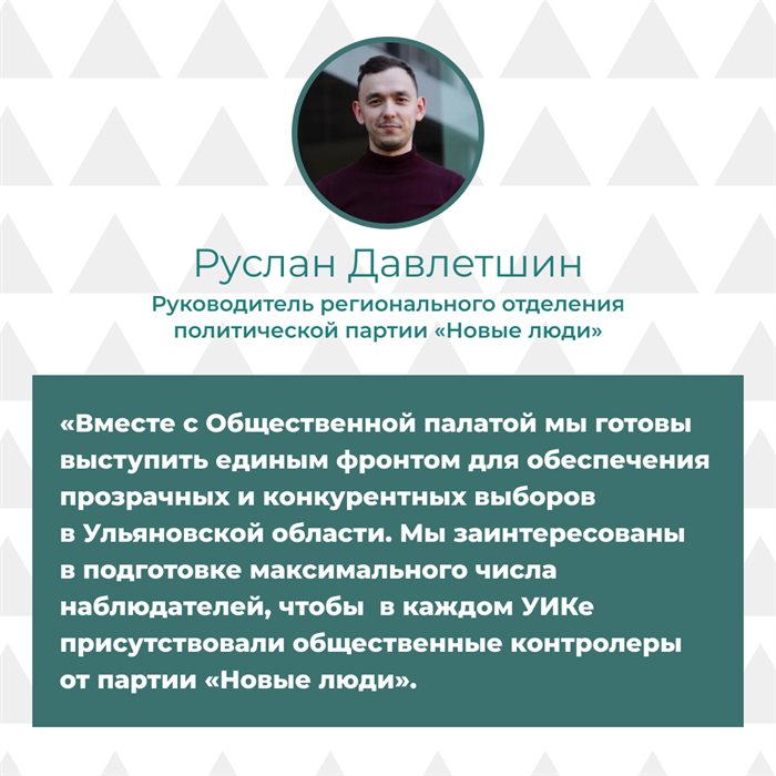 Общественная палата Ульяновской области заключила соглашения о сотрудничестве с региональными отделениями политических партий («Новые люди», «Партия Роста»). Эти партии будут участвовать в выборах, в том числе в качестве наблюдателей.