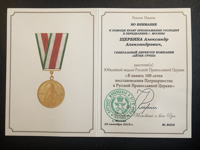 Отметим, проект разработан на благотворительных началах (т.е. бесплатно) и до сих пор находится на сопровождении в ITECH.group. Поэтому, когда в начале февраля Александра пригласили в резиденцию патриарха, он думал, что едет на рабочую встречу. Награждение юбилейной медалью Русской православной церкви стало большим сюрпризом.