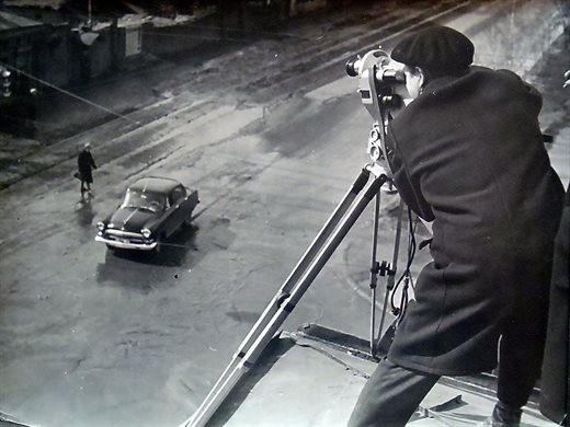Борис Тельнов на крыше дома во время съемки фильма «Вчера, сегодня, завтра»