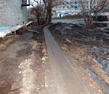 Но на самом деле тем, кто сделал эту деревянную мостовую, жители окрестных домов благодарны. Все-таки по деревянному покрытию ходить куда приятнее, да и безопаснее, чем по раскисшей черной жиже, в которую превращался после дождя «грунтовый тротуар» между вышеназванными домами на улице Аблукова.
