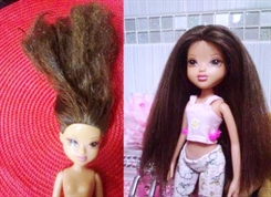 Хоть Юлия и работает с игрушками, процесс восстановления волос совсем не детский. Сначала кукольный парикмахер моет «клиенту» волосы шампунем. Для легкости расчесывания наносится бальзам-кондиционер. После того как шевелюра промыта и просушена, начинается самый кропотливый труд. «Мочалка» из волос разбирается на мелкие пряди и прочесывается расческой с мелкими зубьями. Дальше на помощь приходят утюг и ножницы, а в крайне тяжелых случаях - крючок и новые волосы. Все секреты мастерства мы раскрывать не будем. Но то, что для такой работы стоит запастись терпением, отметим однозначно.
