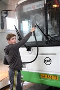 - В общем-то, ничего сложного, - делится секретами «профессионального мастерства» Никита. - Подъезжает автобус, включаешь воду и шлангом вымываешь из салона пыль и грязь. Потом еще щеткой пройдешься и лобовое стекло протрешь. Вот, собственно, и все. На одну машину минут пять-десять уходит, всего за смену обслуживаем десять-пятнадцать машин. А снаружи автобус в автомойке моют. В прошлом году я тоже летом работал - территорию убирал. Но здесь мне больше нравится.