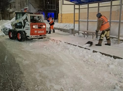 Ночью дорожники Ульяновска расчищали от снега тротуары и остановки общественного транспорта