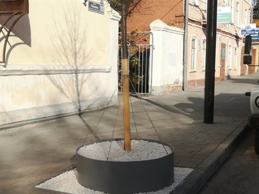 «В рамках реконструкции улицы Ленина применен новый формат высадки саженцев – в защищенные приствольные круги. Мы взяли нарезанную трубу диаметром 1200 миллиметров и шириной 40 сантиметров. Тем самым мы не допускаем попадания песко-соляной смеси на приствольный круг и защищаем дерево от механических повреждений при уборке тротуаров. Также мы обвязали стволы бамбуковыми ковриками, благодаря такой конструкции обеспечивается безболезненное нахождение деревьев на территории. Рано или поздно мы придём к тому, что на всех центральных улицах, где есть примыкание деревьев к дороге, будет применена подобная технология», – сообщил Геннадий Моргунов.