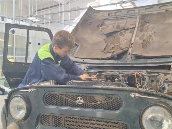 В этом образовательном учреждении ремонтируют автомобиль УАЗ и плетут маскировочные сети для последующей отправки в зону специальной военной операции.