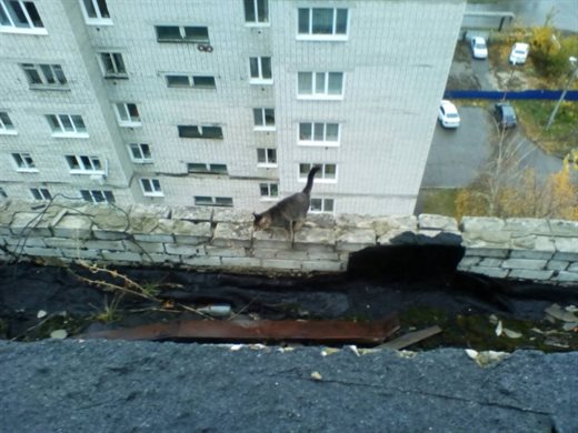 Очередная спасённая жизнь. Сотрудники МЧС сняли кошку с козырька балкона