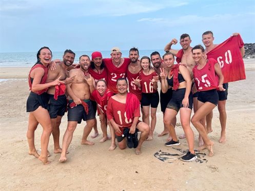 «Голод был такой, что если бы ведущий предложил не бургер, а сухарь, мы бы всё равно стояли насмерть. Я на краю платформы, стопа свисает над водой, как котлетка из бургера за пределы булки. Каждый вздох и шорох в центре команды отзывался по краям так, что казалось: ещё чуть-чуть - и мы рухнем. Когда ведущий заставил нас поднять руки вверх, всё заиграло новыми красками. Плечи горели, напряжение росло, тела соседей налегали друг на друга. А придерживаться руками нельзя — только баланс», – вспоминает Артем Ржата.