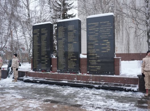 Участники митинга возложили цветы к памятникам воинам-афганцам и монументу «Скорбящей матери». Минутой молчания собравшиеся почтили память павших в бою воинов, кто с честью и достоинством выполнил свой воинский и интернациональный долг. А после митинга они приняли участие в панихиде по погибшим. Ее организовали в Спасо-Вознесенском кафедральном соборе.