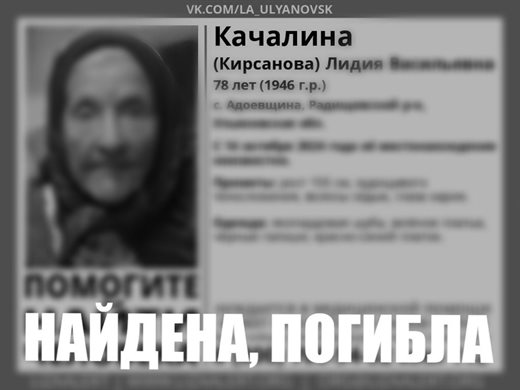 Сегодня поисковый отряд сообщает, что в селе Адоевщина Радищевского района Ульяновской области пропала 78-летняя женщина.