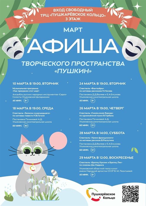 Несмотря на то, что погода еще совсем не весенняя, весна уже на пороге. Жизнерадостно чирикают воробьишки, в руках мужчин яркими искорками вспыхивают тюльпаны. Отмечаем женский день 8 Марта и проводим выходные культурно. Ulpravda.ru подскажет, как это сделать.