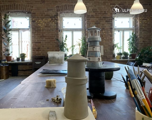 В «Чародеях» можно поработать на гончарном круге, но маяк лепится из деталек, которые мы – начинающие гончары - вырезали из глиняного пласта, потом склеивали с помощью жидкой глины, потом прорезали окна, намечали дверь, формировали крышу. Два часа прошли в сосредоточенной и медативной работе, которая совсем не утомила, а помогла родиться новым идеям. «А вот в следующий раз я сделаю круглые окна, а у двери нарисую кирпичную кладку», «А я сделаю фигурный балкончик и помпончик на крыше» - делились планами участники мастер-класса.