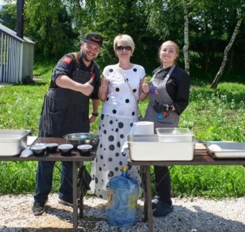 Юлия Евдокимова (в центре). По рецепту из ее книги «К России с любовью! В поисках тишины, восходов и изумрудного варенья» варили тройную уху на ВДНХ